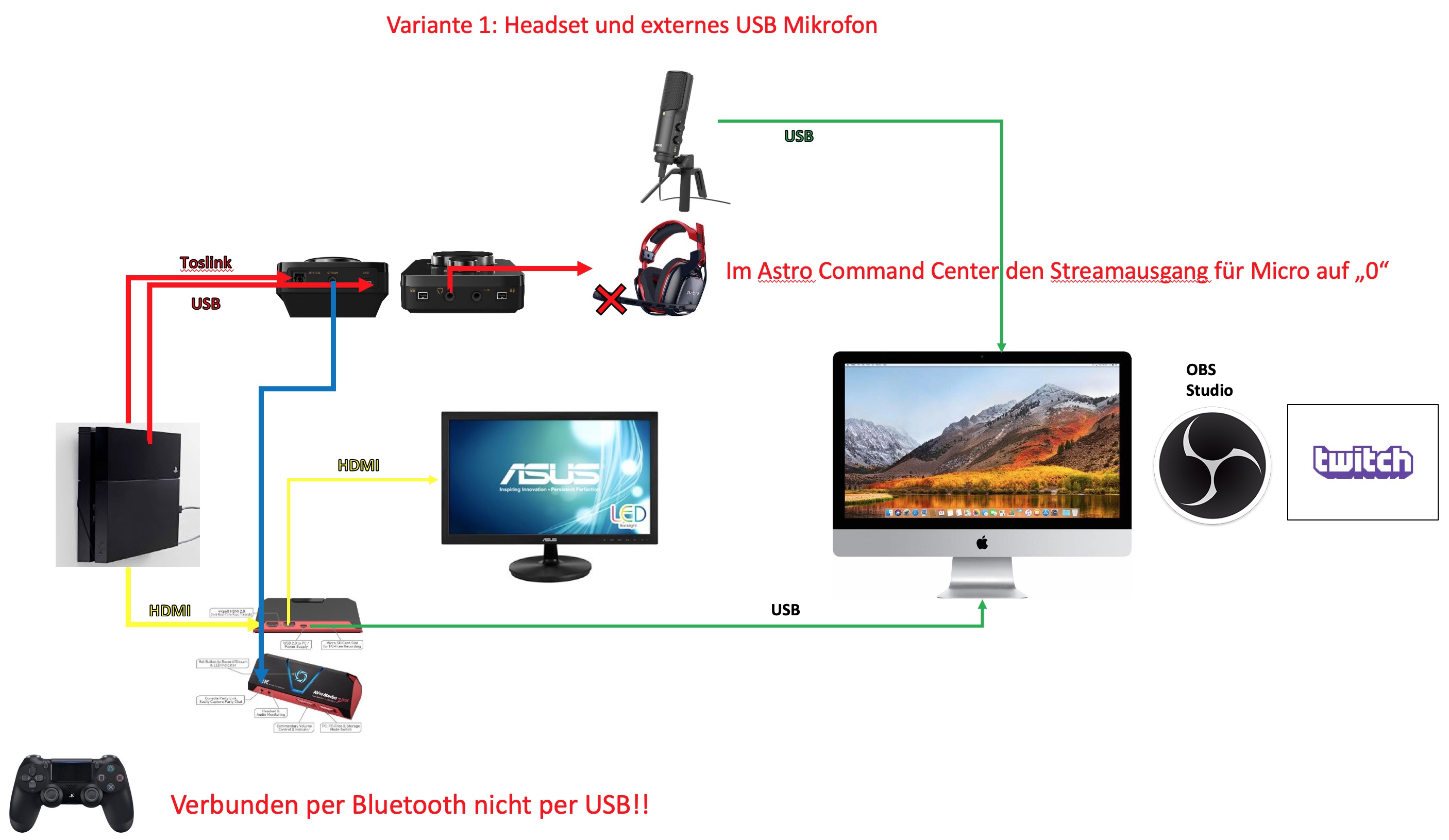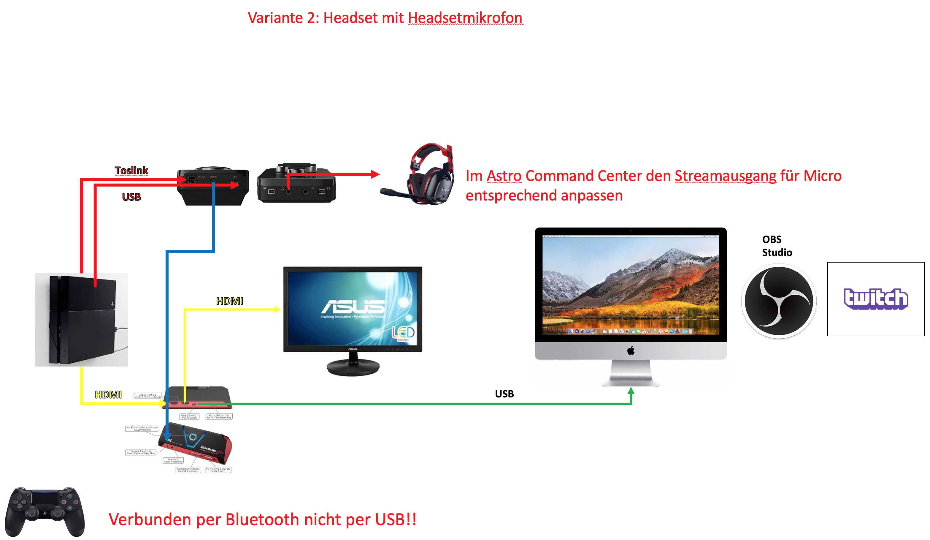 • Hier mal 2 Wege mit PS4 über iMac und OBS zu streamen..mit Headset und Headsetmikro und Headset mit externen Mikro