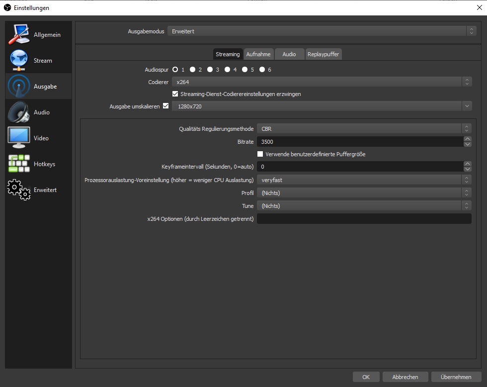 Auch die Presets mal auf "very fast" gestellt, einige Änderungen haben das Bild etwas flüssiger oder schöner gemacht, aber so das ich mir den Stream als Zuschauer selber anschauen würde, ist er nicht .