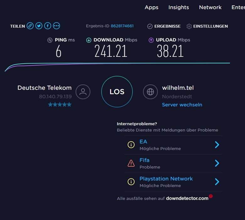 Internetleitung: 1&1 250k (40mbit upload)