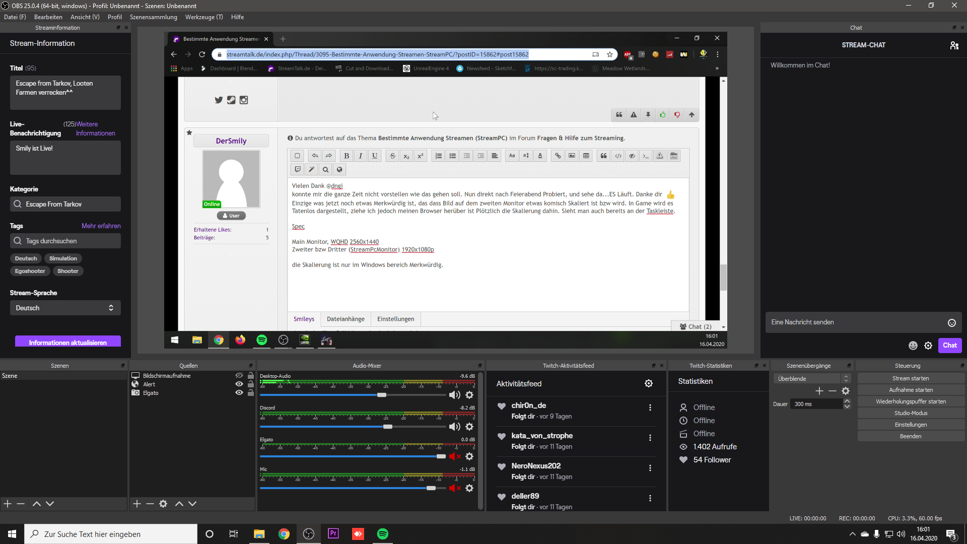 auf der suche nach meiner Frage, bin ich auf dieses Forum gestoßen. Erstmal Geil das es sowas gibt. Habe ständig Fragen rund um das Streamen^^ (Wer hätte es gedacht