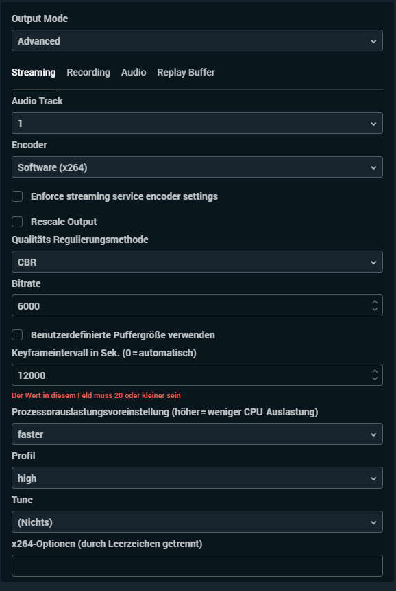 Problem ist , das wenn ich FASTER or HIGHER tiefer stelle das ich Cluster-Bildungen habe. 6000KBit reichen um dieses dazustellen. 6000 habe ich gewählt da ich auf Twitch weder Affiliate bin noch Partner. Ich hoffe das ändert sich auch die Tage.