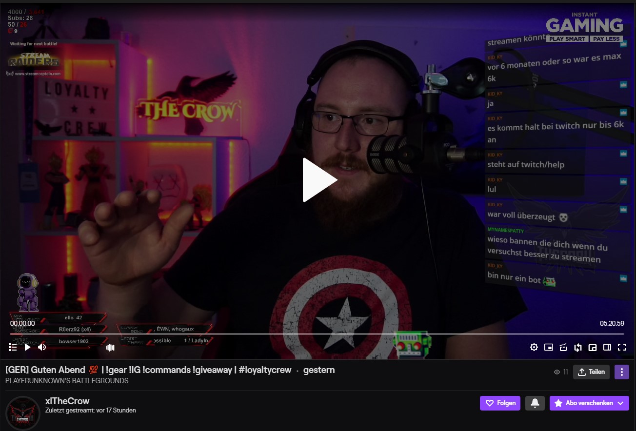 ich habe ein Problem mit der auf Twitch angezeigten Leiste, die sich normalerweise über dem Stream befindet. Ich hoffe, dass ich hier im richtigen Bereich bin, ansonsten sorry und verschiebt mich bitte! ![]()
