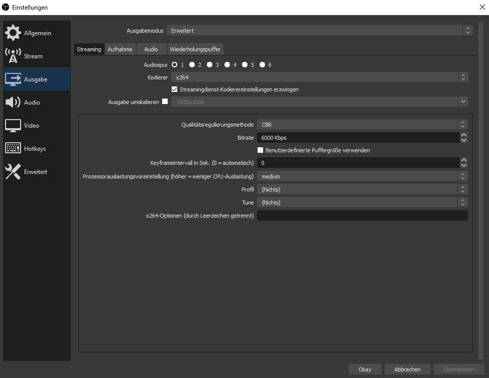 OBS Einstellungen:
