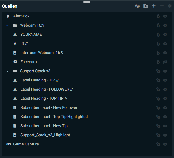 Damit du nicht alles löschen musst, kannst du oben in der OBS Leiste über "Szenensammlung" eine neue, leere erstellen.