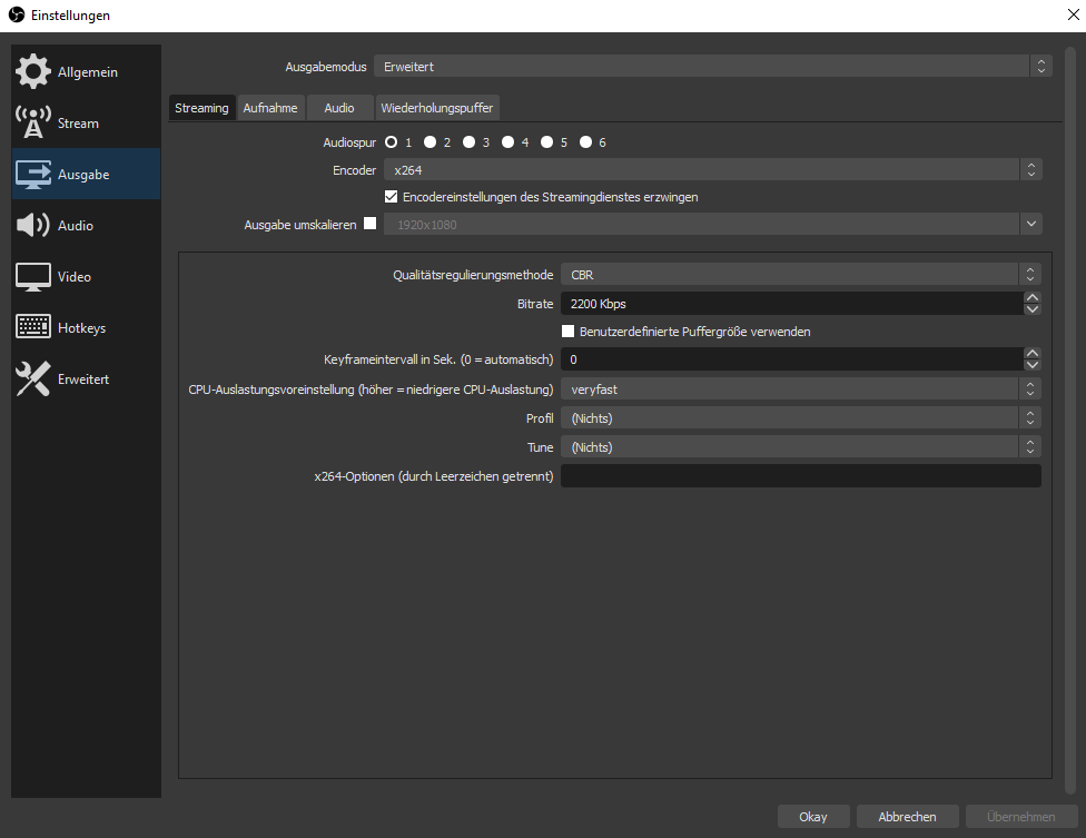 Seh ich das richtig? Du streamst 1080p mit einer 2200er Bitrate?