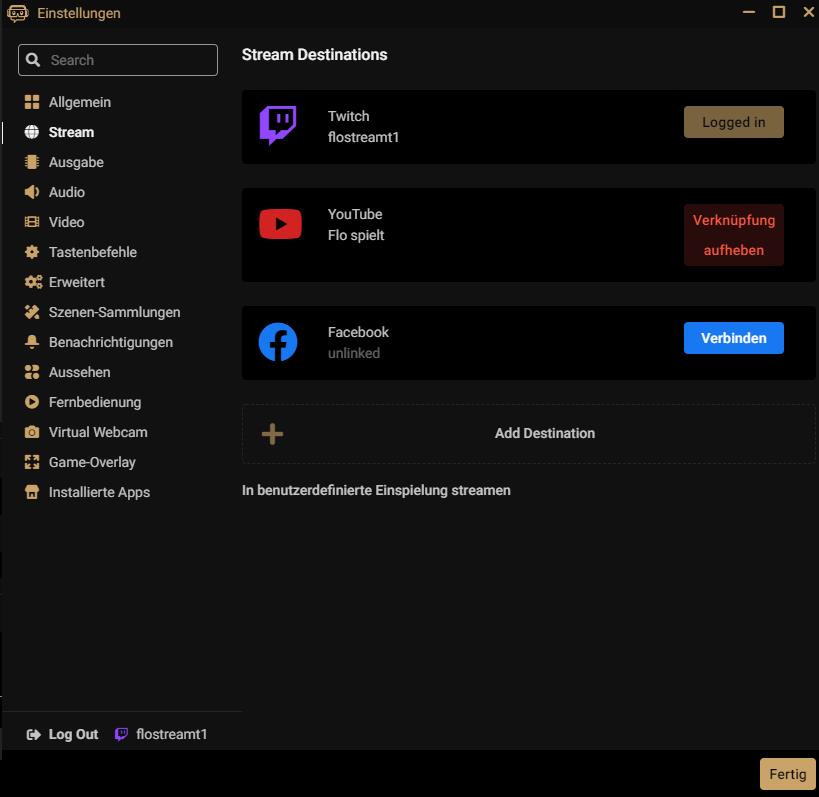 Nur leider funktioniert das nur bedingt. Habe alle Daten soweit korrekt eingegeben und meine beiden Kanäle im SLOBS verknüpft. Leider funktioniert der Stream nur auf Youtube. Bei Twitch erhalte ich Fehler 1000 "Der Videodownload wurde abgebrochen". Schalte ich, bevor ich live gehe, Youtube aus und streame nur auf Twitch, funktioniert alles.
