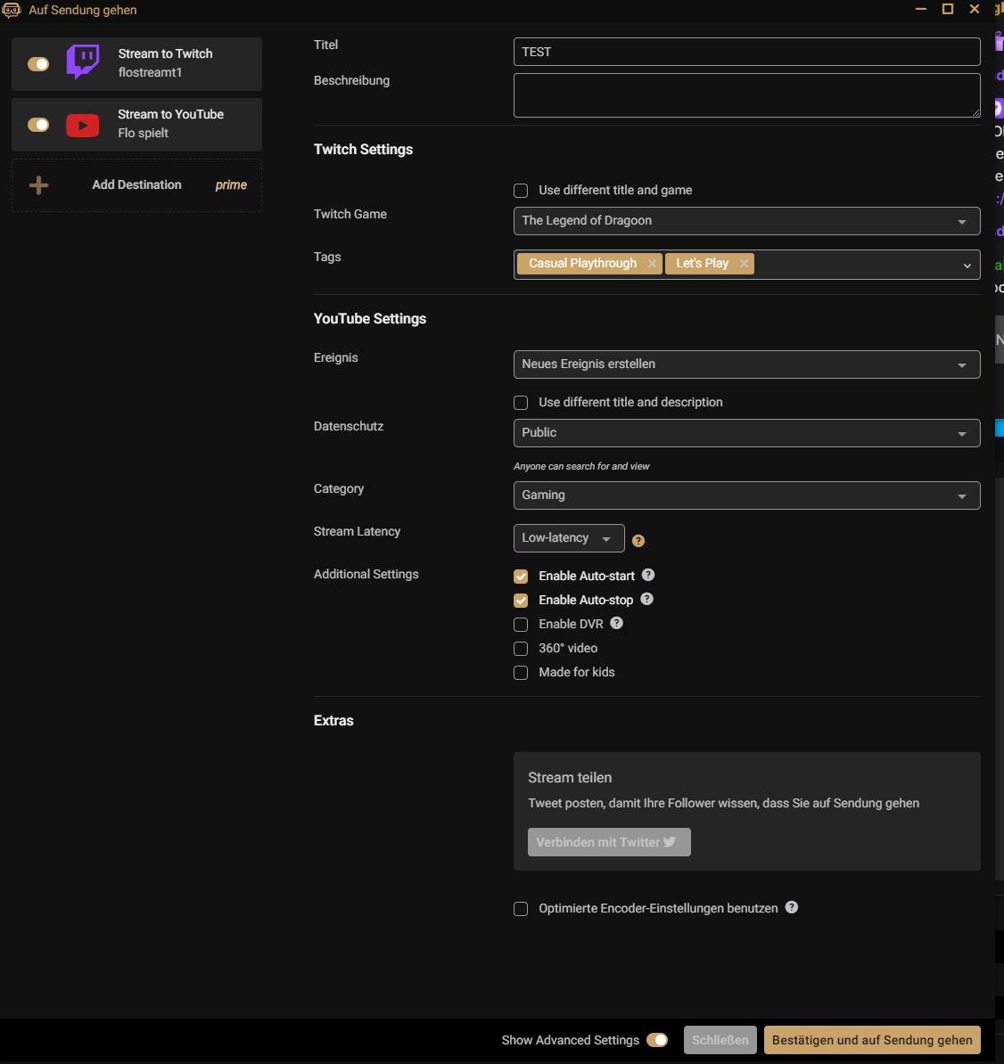 Ich habe mir am Wochenende Streamlabs Prime zugelegt, um in Zukunft Multistreams auf Twitch und Youtube veranstalten zu können.