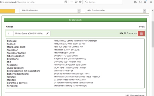 Die zwei Ausstattungen füge ich als Foto bei. Bitte sagt mir nicht, dass es zu teuer ist. Einen Zusammenbau in Eigenleistung bekomme ich nicht hin. Deswegen sollte der Rechner fertig sein. Außerdem benötige ich eine offizielle Rechnung.