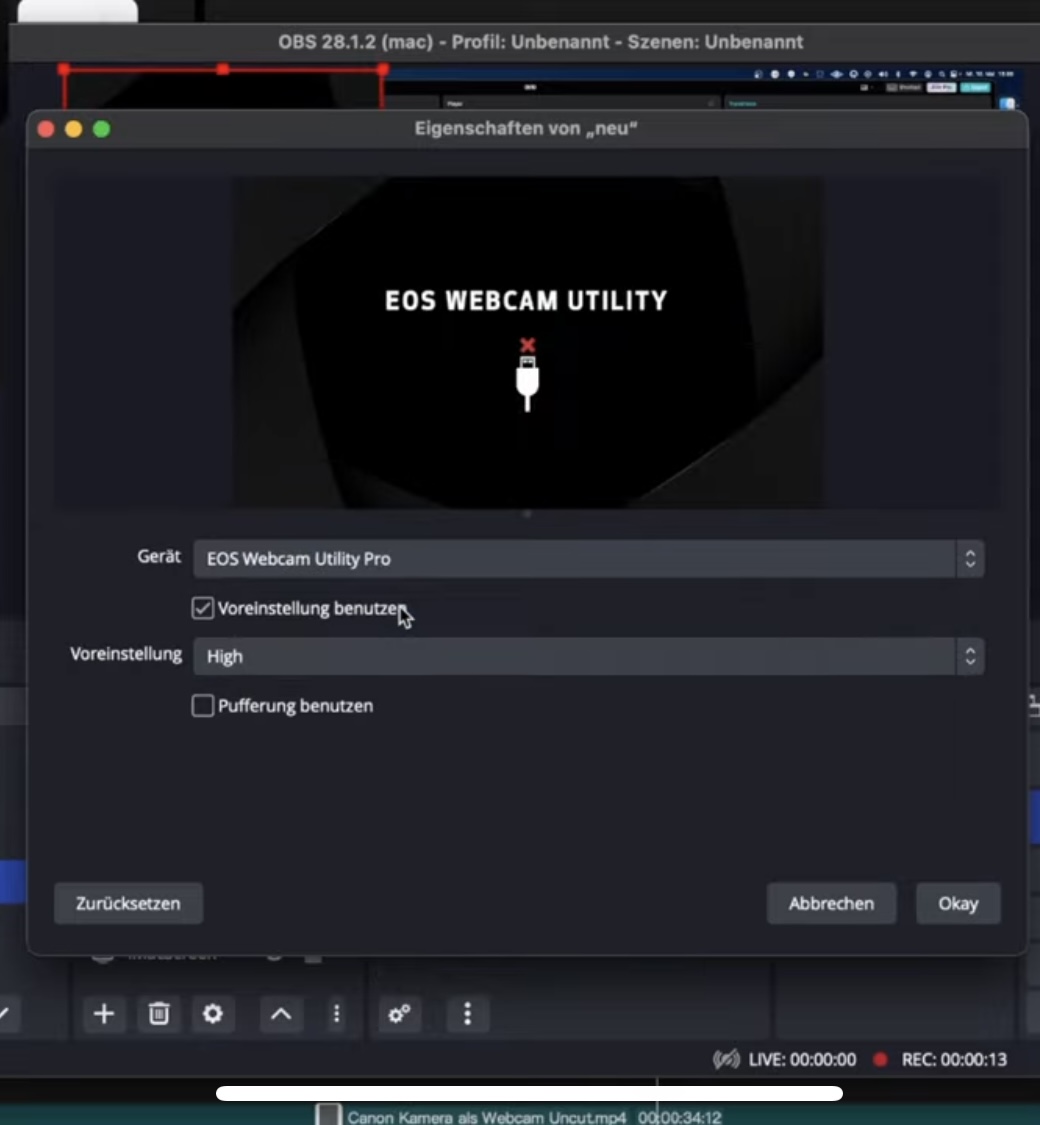 Tach zusammen, wollte meine EOS 2000D nutzen in OBS, aber bekomme irgendwie kein Bild.
