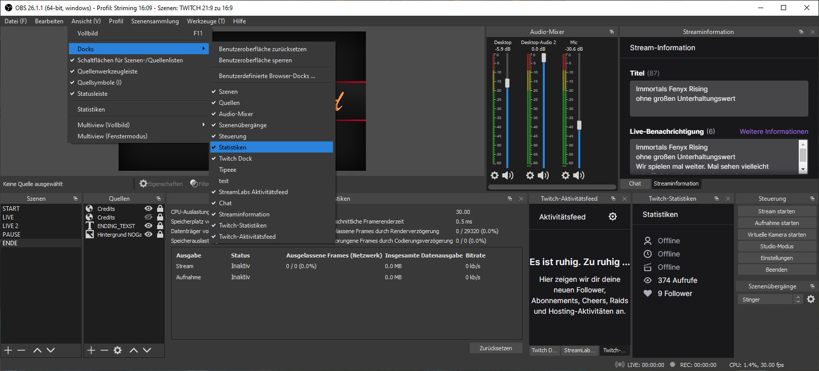 Was meine ich nun mit Dia Show? Joa so 1FPS war das gefühlt... Auch in der Streamlabs vorschau