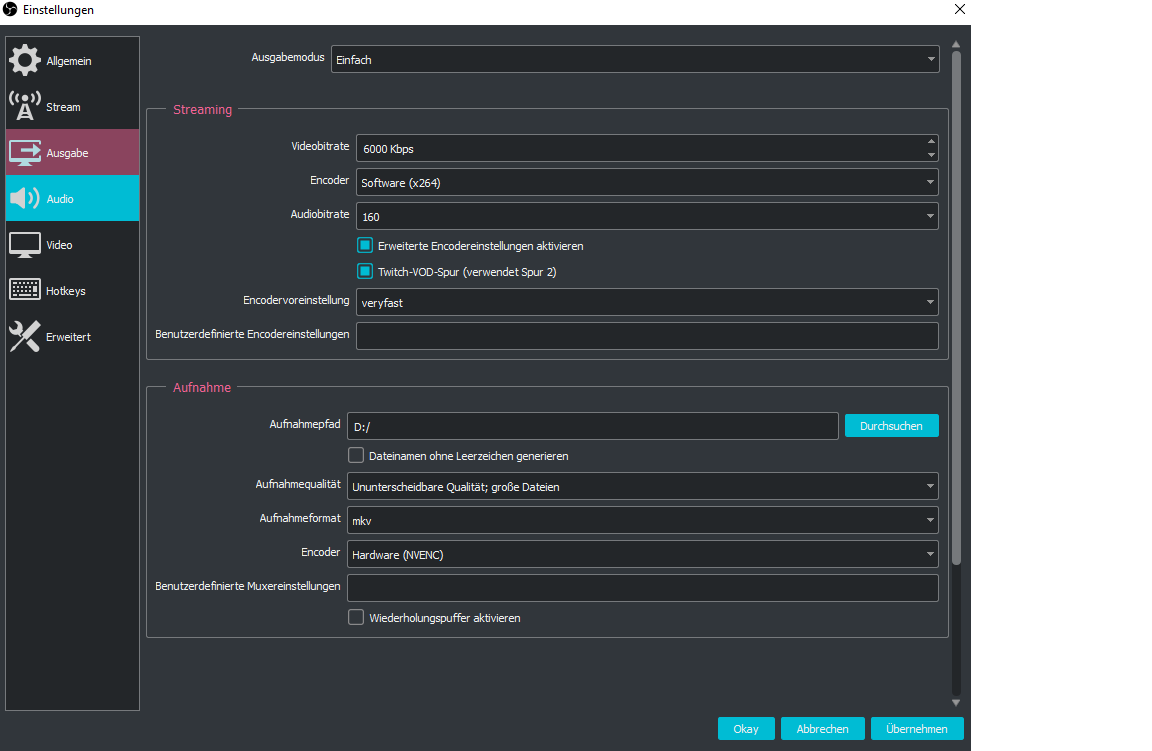 Im den Dateianhängen findet ihr meine OBS Einstellungen.