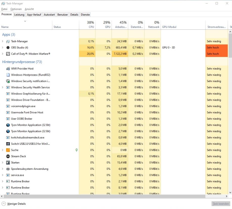 OBS von Medium auf Fast reduziert, Vorschau on/off, Game Capture/Monitor Capture und und und (OBS wird immer als Admin gestartet).