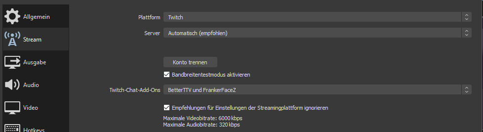 OBS eingerichtet in: x264 - 5840 Kbps - fast - main - Keyframe 2 - 1536x864 (Kbps und Auflösung habe ich mal aus nem Video als "der Tip" übernommen.