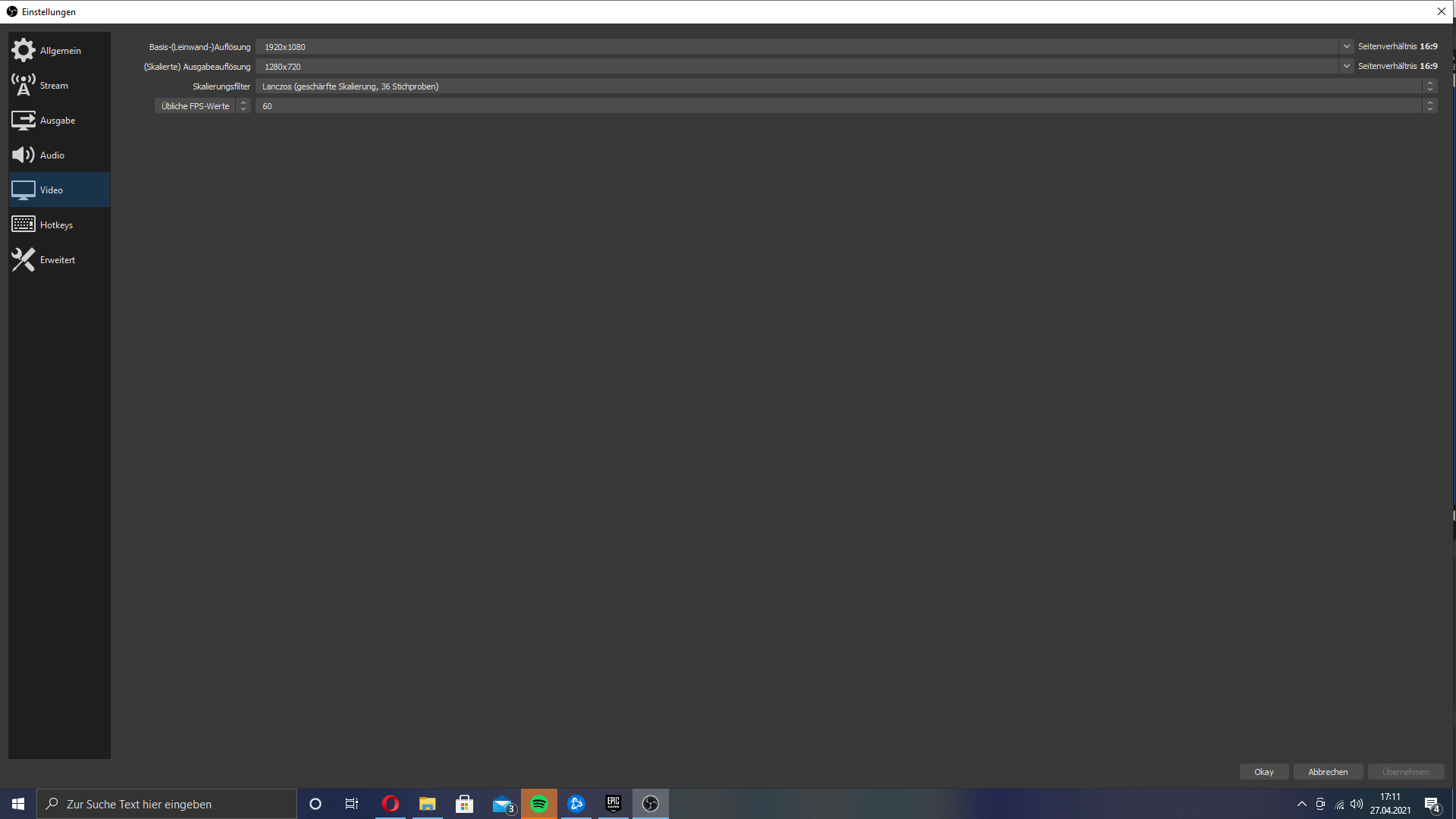 • Poste mal dein Video Setting von OBS und mit wie viel FPS spielst du was ist dein Maßstab bei deinem Vergleich? OBS gibt je nach Einstellung 30 FPS oder 60FPS aus