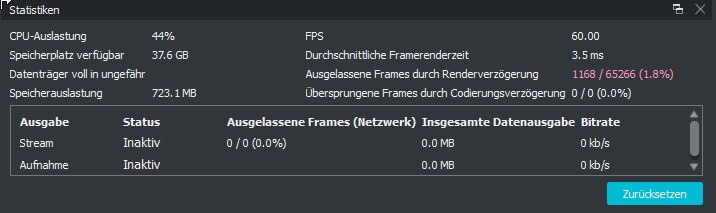 Mein Problem ist das sobald ich OBS starte meine CPU dauerhaft auf 100% Auslastung geht und ich deswegen ständig Framedrops habe und es zwischenzeitlich laggt.