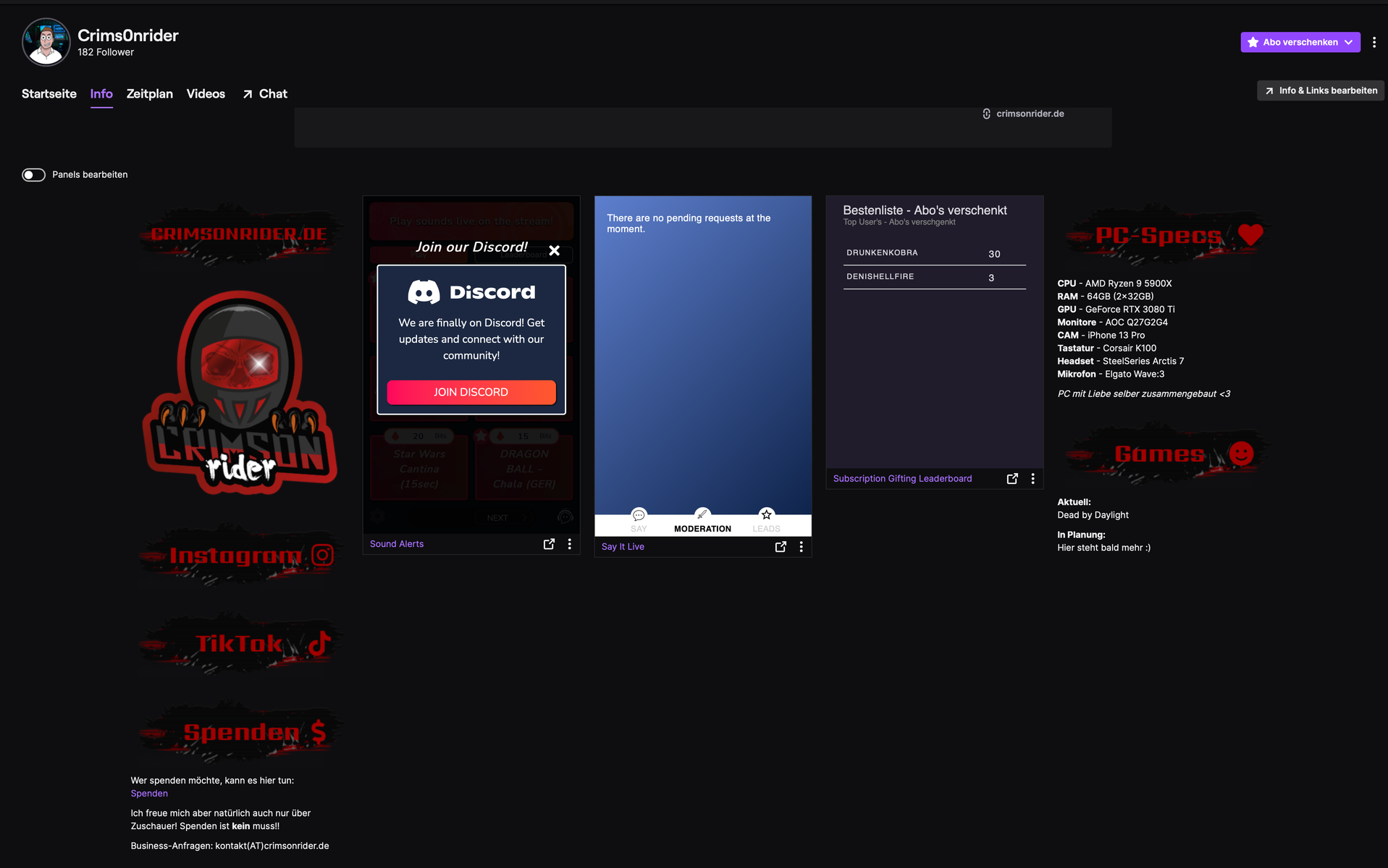 ich bin Crimsonrider aka Crimson. Ich würde euch gerne meinen Stream vorstellen, ich habe erst angefangen und wir knacken bald die 30 Tage. Ich habe mir gedacht, eine kurze Vorstellung von meiner Seite aus wäre TipTop.