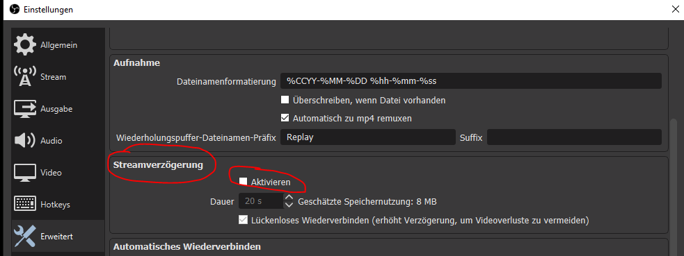 ich versuche nun schon seit ein paar tagen auf Twitch zu Streamen und habe dauerhafte Verzögerungen beim Übertragen von 10sec und mehr.