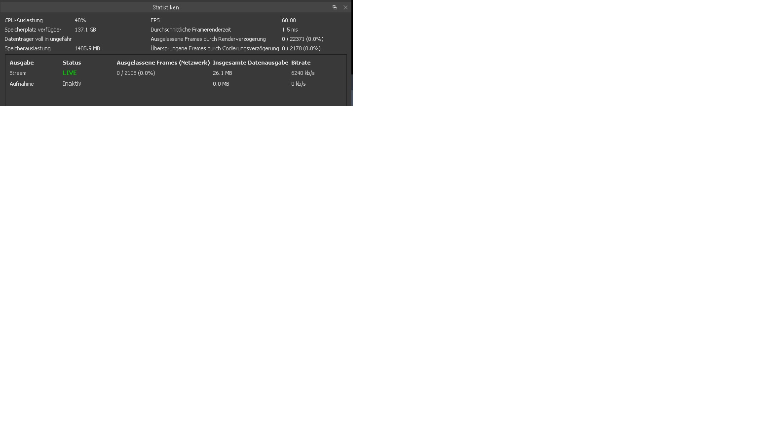 (Ich habe mal als Beispiel ein Bild von meinem Stream und noch meine aktuellen settings in OBS hinzugefügt)