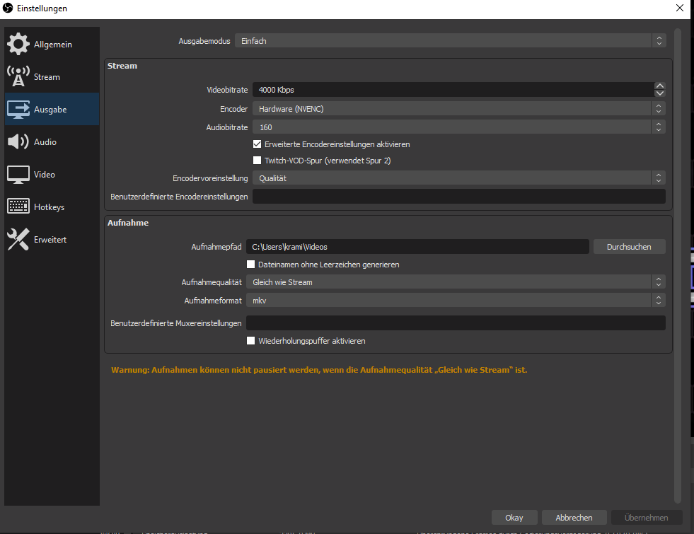 und noch eine andere Frage ich weiß nicht ob sich da jemand auskennt aber bei mir kommt es öfters vor das mein stream einfach abartig lagt und das wegen den Übersprungene Frames durch Codierungsverzögerung woran das liegt das man das vielleicht nicht beheben kann.