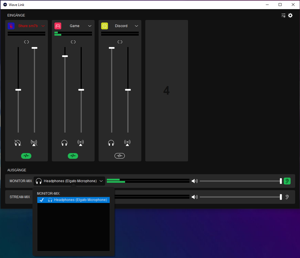 Ich habe jetzt nur noch die Möglichkeit, dass ich die Kopfhörer direkt am Wave XLR anschließe und den Monitor-Mix auf "Headphones (Elgato Microphone)" stelle.