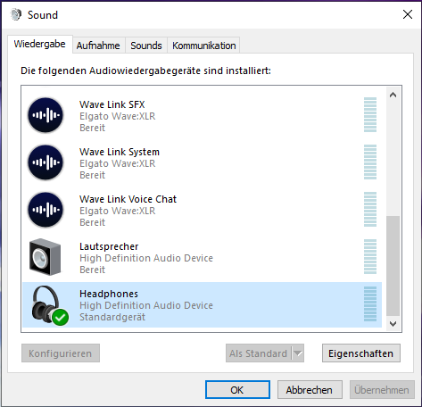 ich hatte bisher meine iPhone-Kopfhörer direkt am PC angeschlossen und als Monitor-Mix in Wave Link eingestellt. Die Kopfhörer werden eigentlich als "Headphones (High Definition Audio Device)" angezeigt.