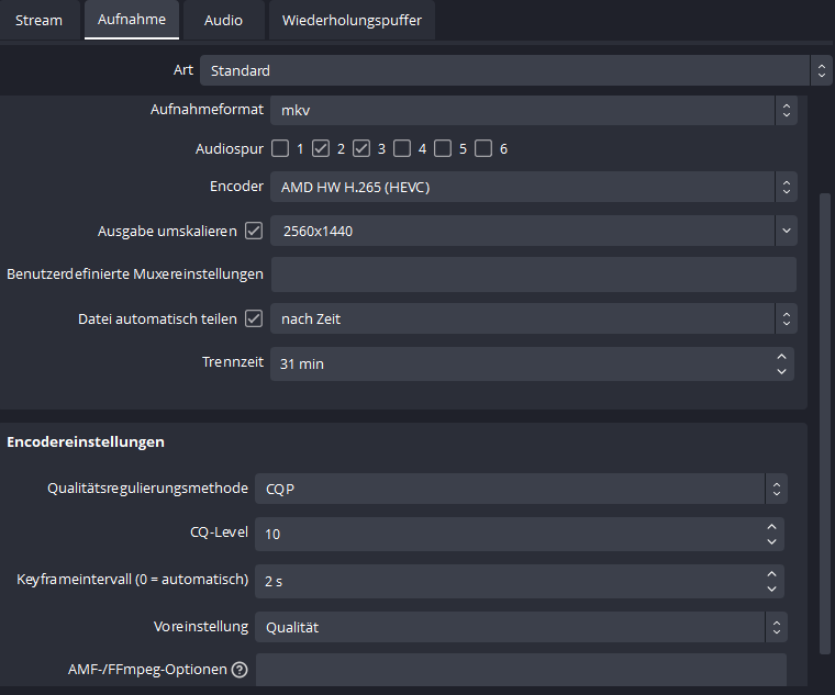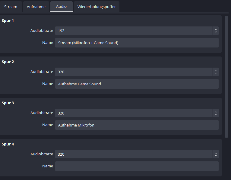 Was ich bisher ausprobiert habe, um Problem 1 zu beseitigen --> Tonspuren getrennt und zusammen aufgenommen --> keine Änderung/Verbesserung der Output Qualität --> Audiobitrate erhöht bzw. verringert --> kein Unterschied feststellbar