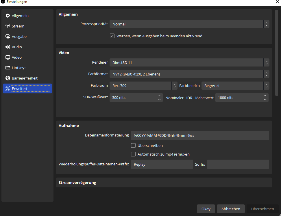 OBS Settings/ und nen Speedtest füge ich mal oben an. Und ein Livestream