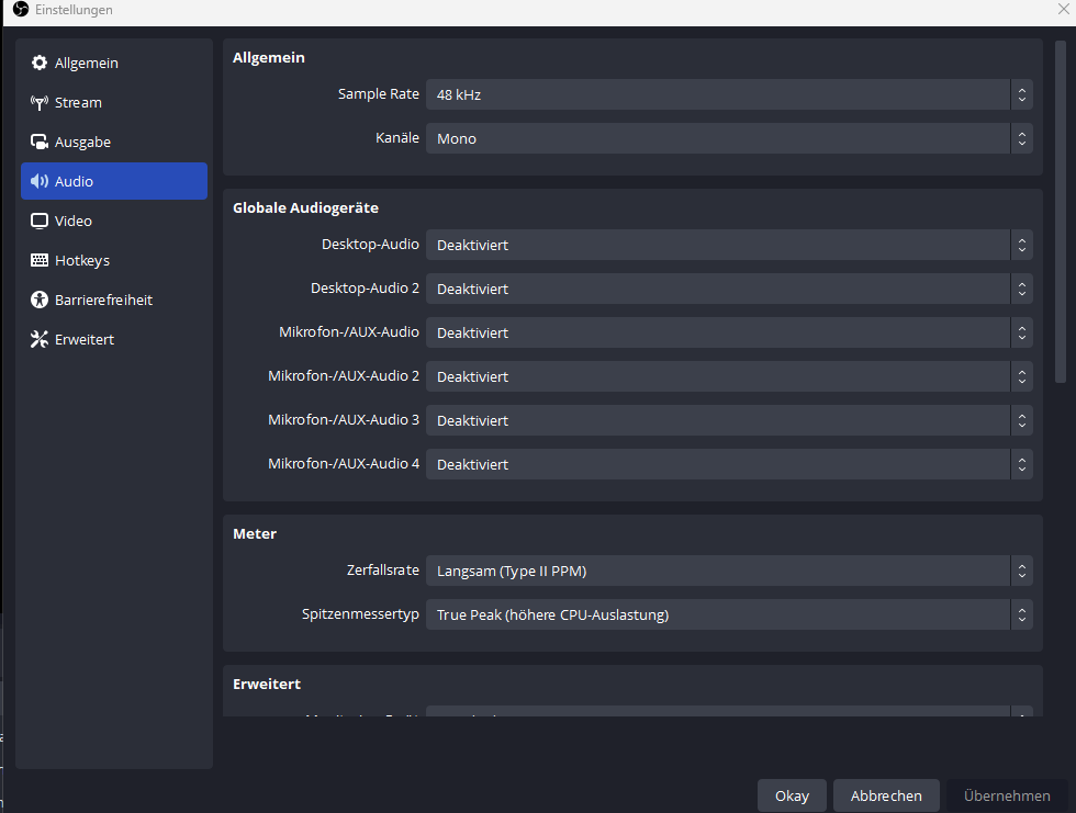 4) Es liegt nicht daran, dass ich in den erweiterten Audioeigenschaften Monitor aus habe oder so.