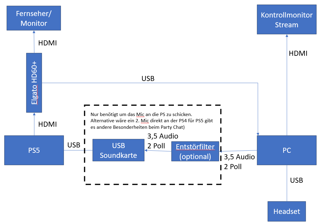• Das Standard Setup beim PS4 Streaming siet so aus: