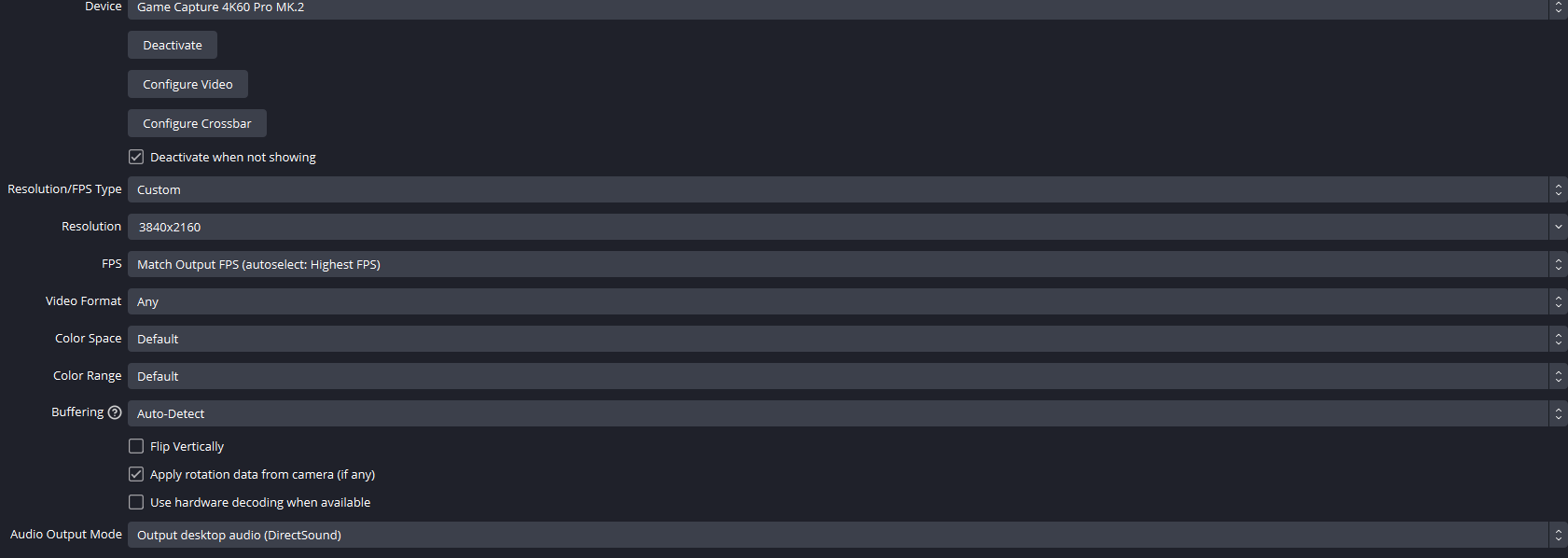 Ich habe noch 2 Screenshots von den Capture Card Einstellungen dran gehangen.