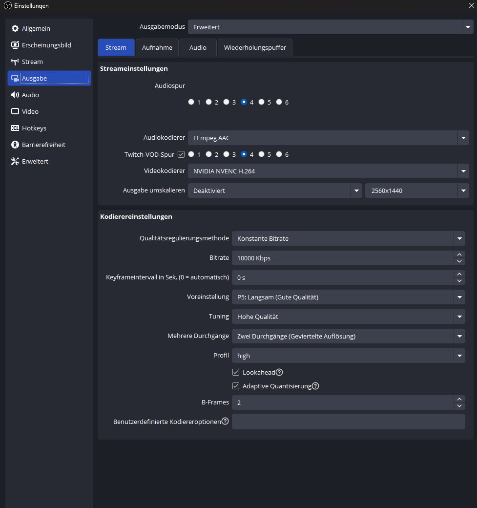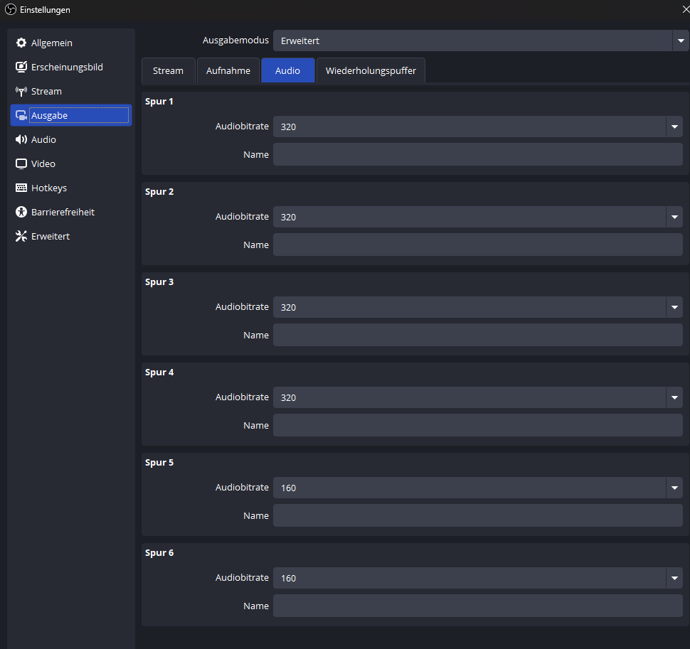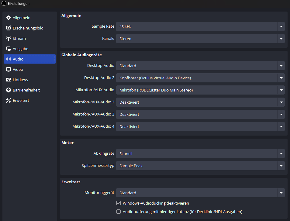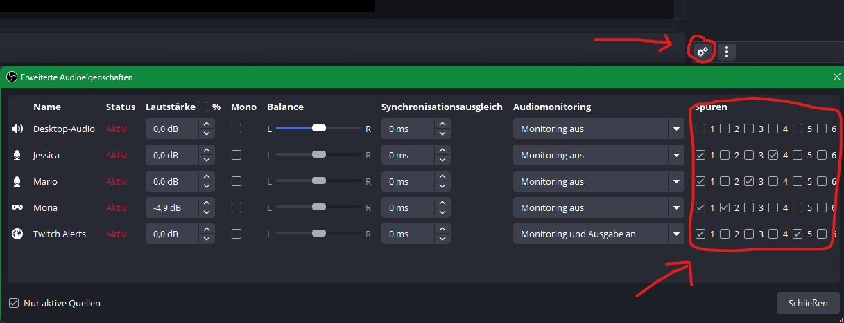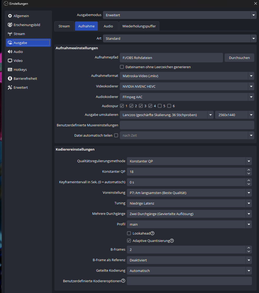 Komischerweise funktioniert alles so, wie ichs eingestellt habe für Aufnahmen. Muss ich da noch irgendwo was ändern oder nen Haken anders setzten?