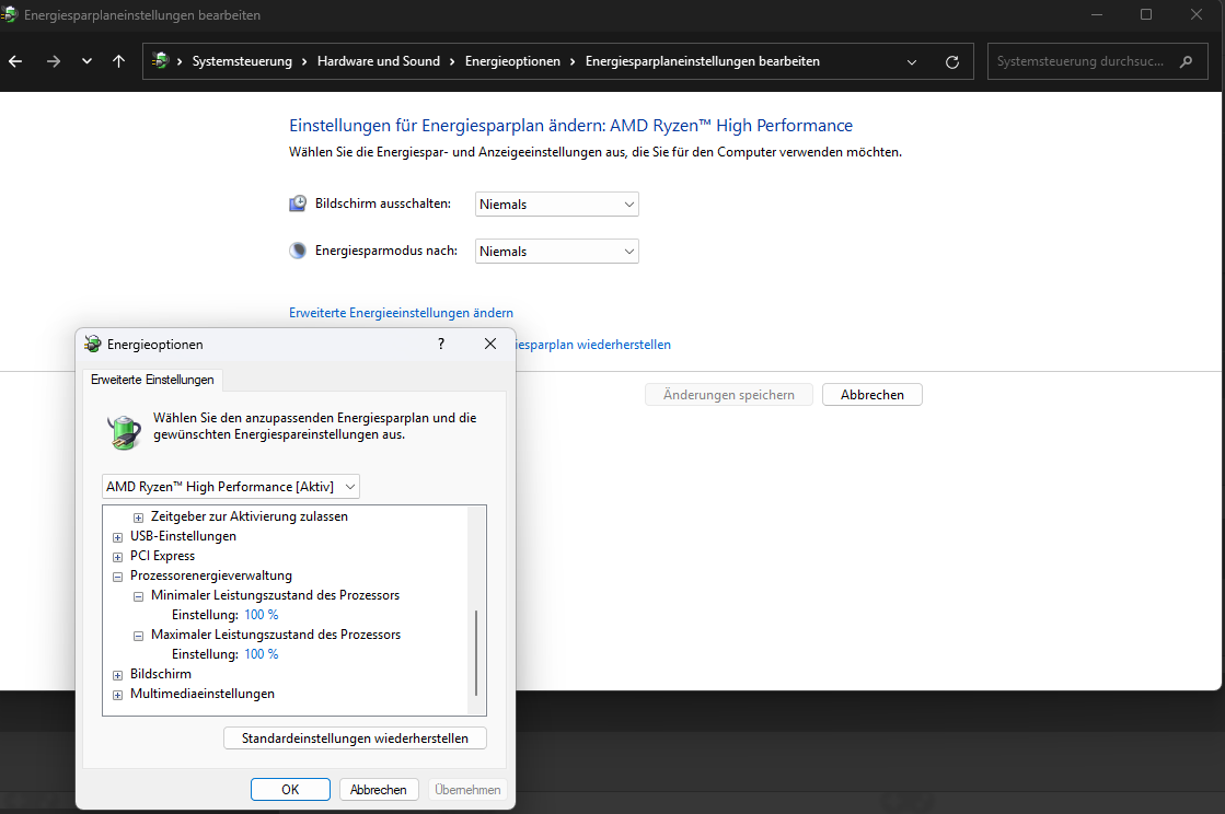 Also ich würde einfach mal die Energieoptionen überprüfen. Beim Laptop gibt es hier für den Netzbetrieb und den Akkubetrieb getrennte Einstellungen.