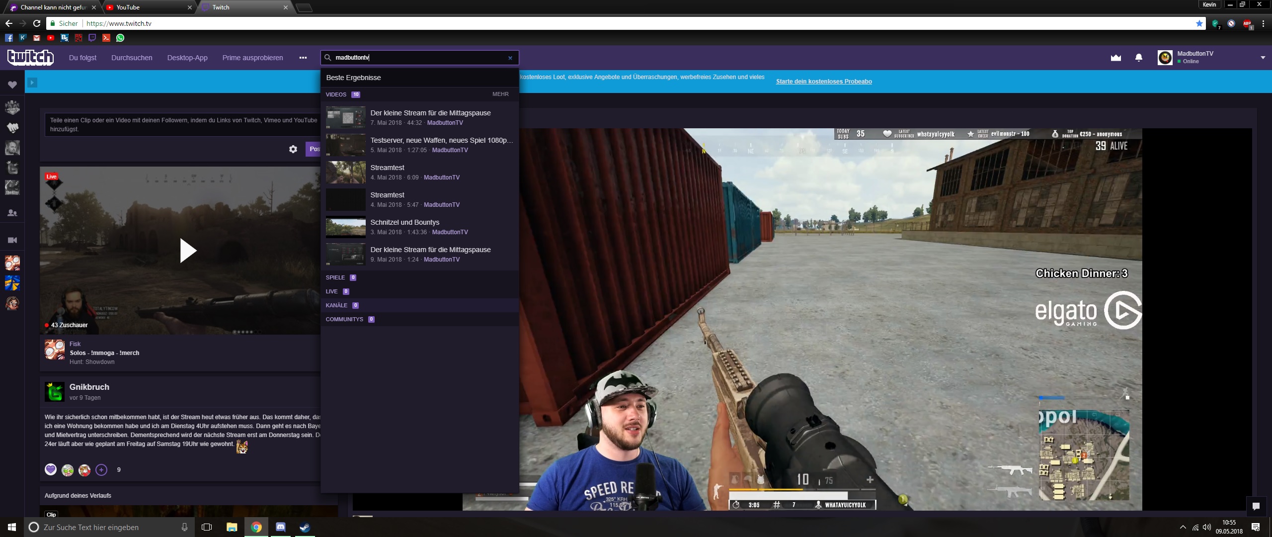 Ich habe das Problem, dass mein Kanal weder in der Suche gefunden werden kann, noch wird er angezeigt unter dem jeweiligen Spiel das ich eingestellt habe wenn ich streame, meine gespeicherten Videos werden jedoch gefunden unter meinem Namen. Per Google kann ich aber gefunden werden und wenn man auf den Stream kommt, kann er auch angeschaut werden.
