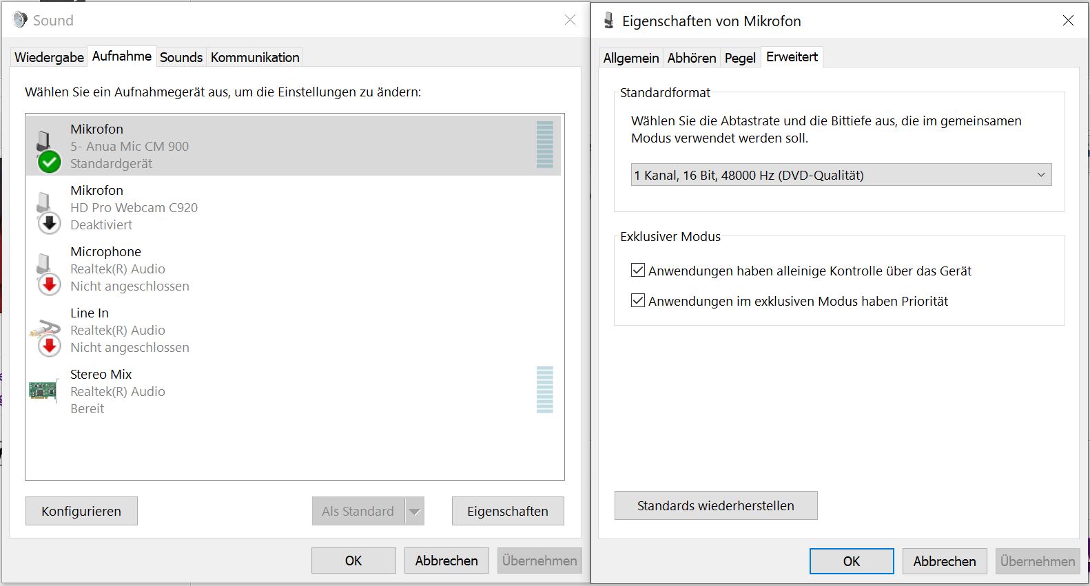 Ich habe bereits mehrere YouTube Videos geschaut und das gemacht was gesagt wurde, natürlich mit ausprobieren, da jedes Mic anders ist und die räumlichen Gegebenheiten.