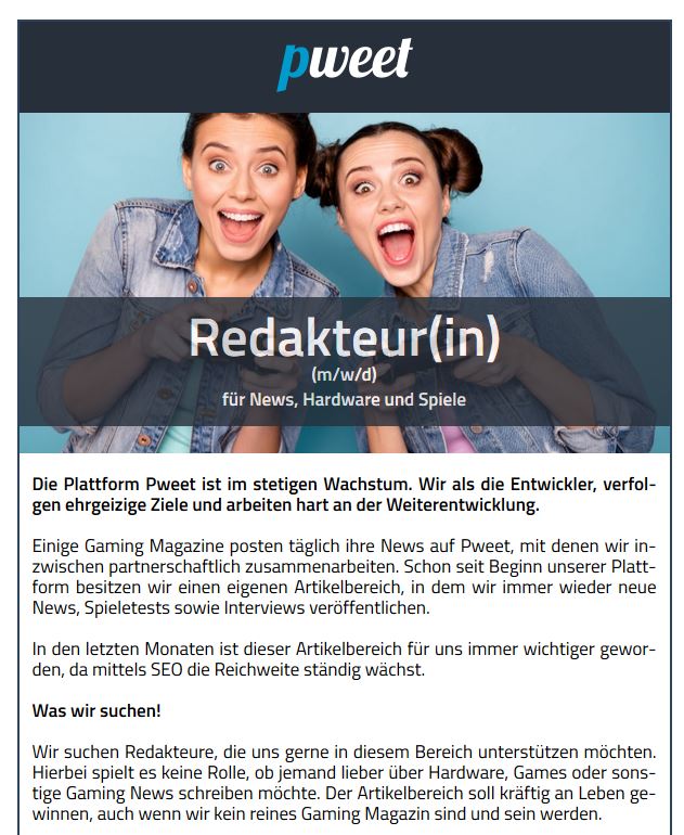 Ihr kennt nun seit geraumer Zeit unser Projekt Pweet, die Gaming Kurzmitteilungsseite. Einige von Euch sind bereits treue Pweeter, was wir sehr schätzen und uns an dieser Stelle nochmals für Eure Treue bedanken möchten. Derzeit sind wir auch daran Pweet 2.0 zu entwickeln, was im Laufe des Jahres nach und nach online gehen wird.