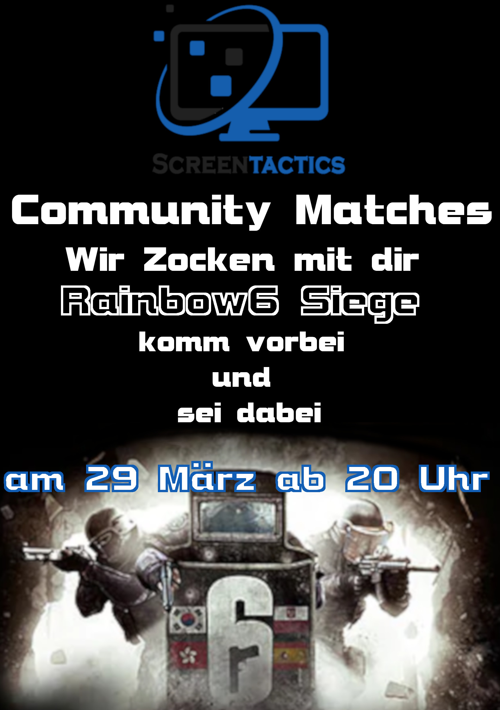 Hey Wer lust hat mit uns zu zocken kommt doch am 29.3 ab 20 Uhr vorbei auf eine Runde Rainbow Six siege