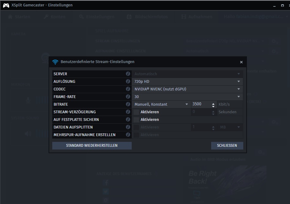 Ich habe schon sowohl OBS als auch Xsplit benutzt, und da schon so einige Einstellungen ausprobiert.