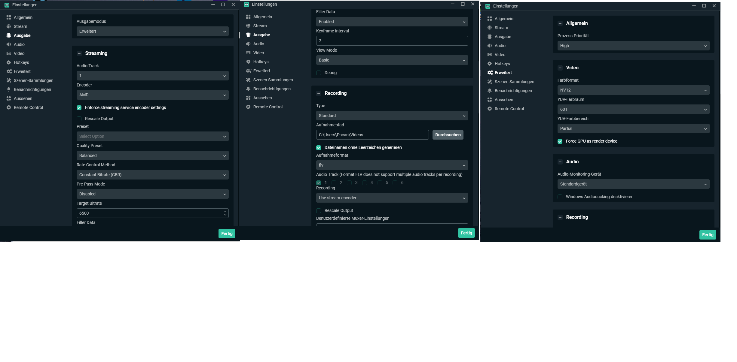 Also mein Fazit: Ich kann immer noch nicht flüssig und in guter Qualität Streamen. Ich habe auch jetzt keine Lust mehr mich damit rumzuschlagen. Ich habe jetzt für mich die Entscheidung getroffen einen extra Streaming Pc zu kaufen da ich das Streamen eigentlich nicht aufgeben möchte. Ich kann dir echt nicht sagen woran das liegt, es lief aber seit meiner Neuinstallation von Windows besser. Tut mir sehr leid das ich dir da jetzt auch nicht weiterhelfen kann.