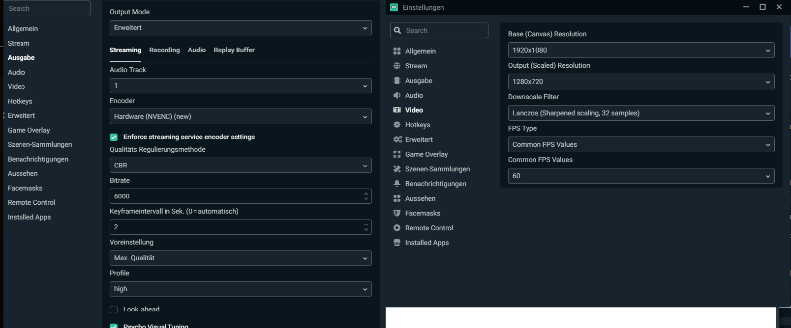 Ich habe ne Zeit lang über CPU gestreamt ( AMD Ryzen 5 2600x ) auch solch spiele wie das neue CoD MW , da meinte jetzt nen Kollege warum streamst du nicht über deine GPU ? ( Nvidia RTX 2070 Super ) die ist auf Streamen ausgelegt und er hat recht hab sehr viel drüber gelesen das die RTX Generation echt top sein soll fürs Streamen, so nu habe ich das Problem das wenn ich auf NVIDIA nvec new stelle ( soll ich so ) und dann auf Qualität oder auch Max Leistung / Qualität das bei einer gewissen action der Stream laggt erst dachte ich es sei mein Upload der wieder probleme macht aber nein die 6K halte ich ohne probleme konstant bitte hat wer nen Rat?