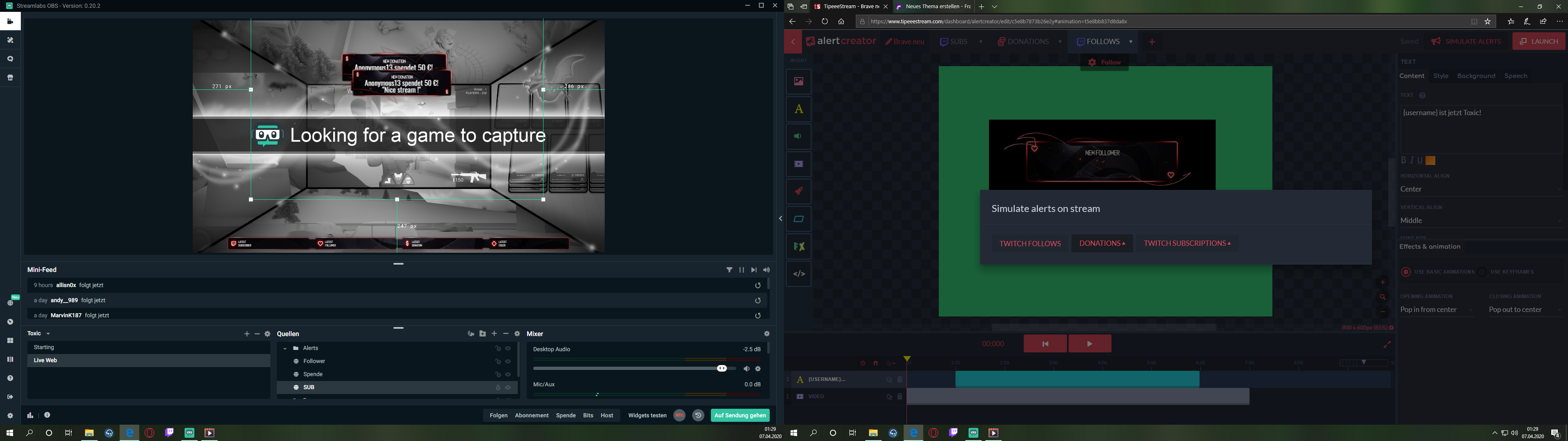 Ich habe mir echt viele Videos angeschaut wie man das alles einrichtet. Jetzt habe ich mit Hilfe von Tipeee meine Animierten Alters in OBS eingepflegt. ABER! Wenn ich zb nur Follwer einpflege dann Klappt es super.