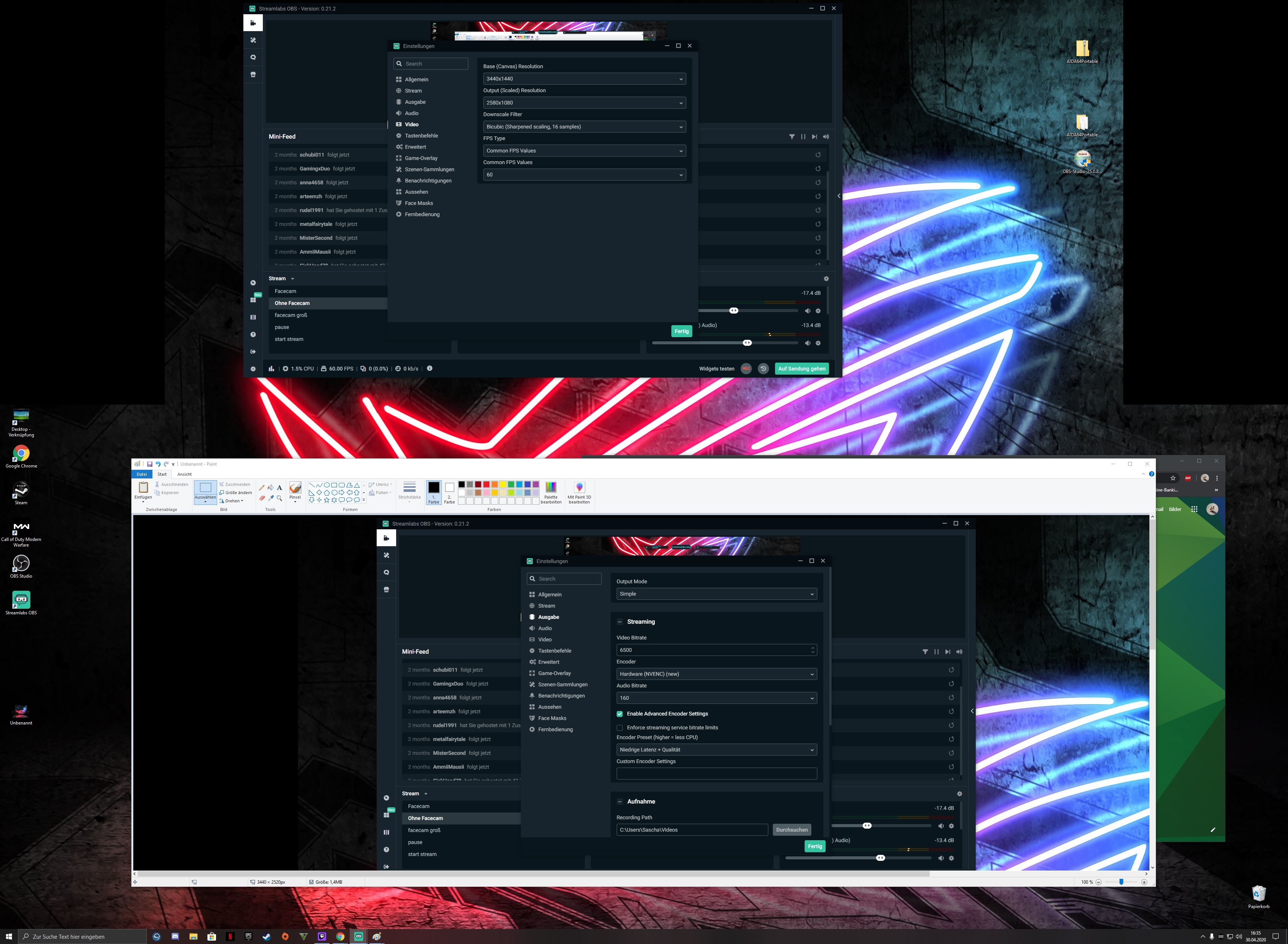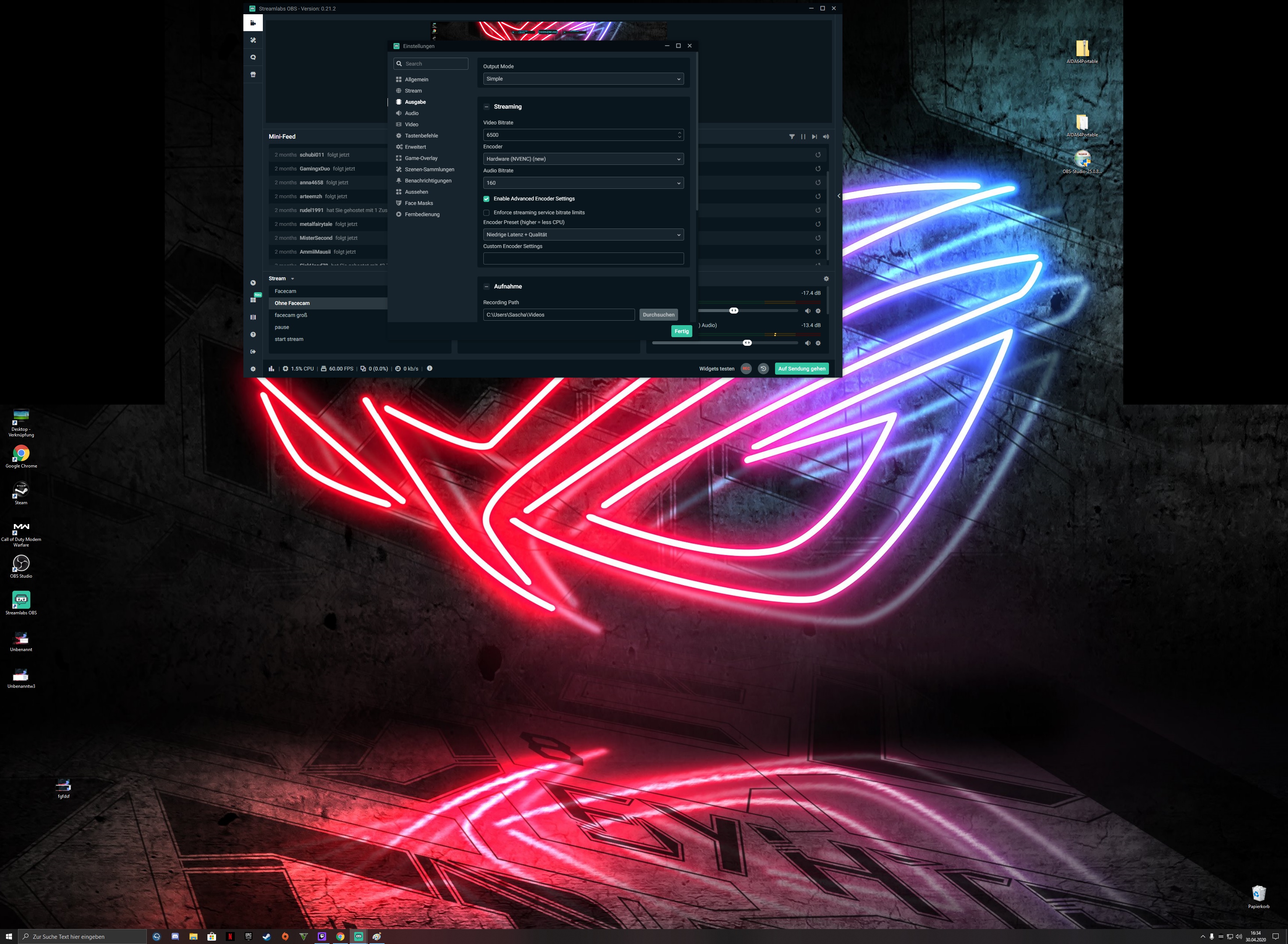 ich dachte das ich damit in 60fps streamen kann aber ich hab immer starke fps einbüche wenn ich versuche cod warzone zu streamen.