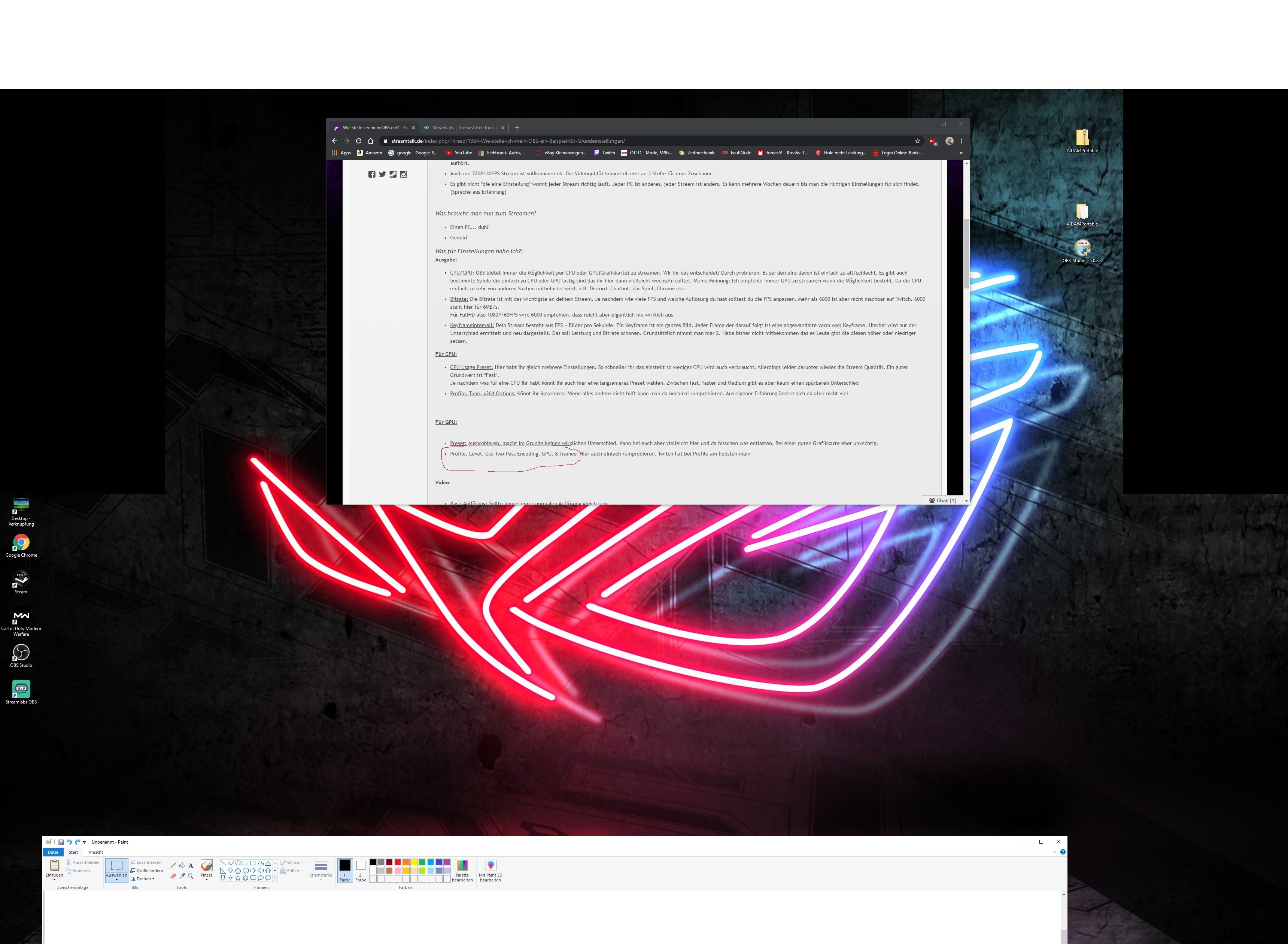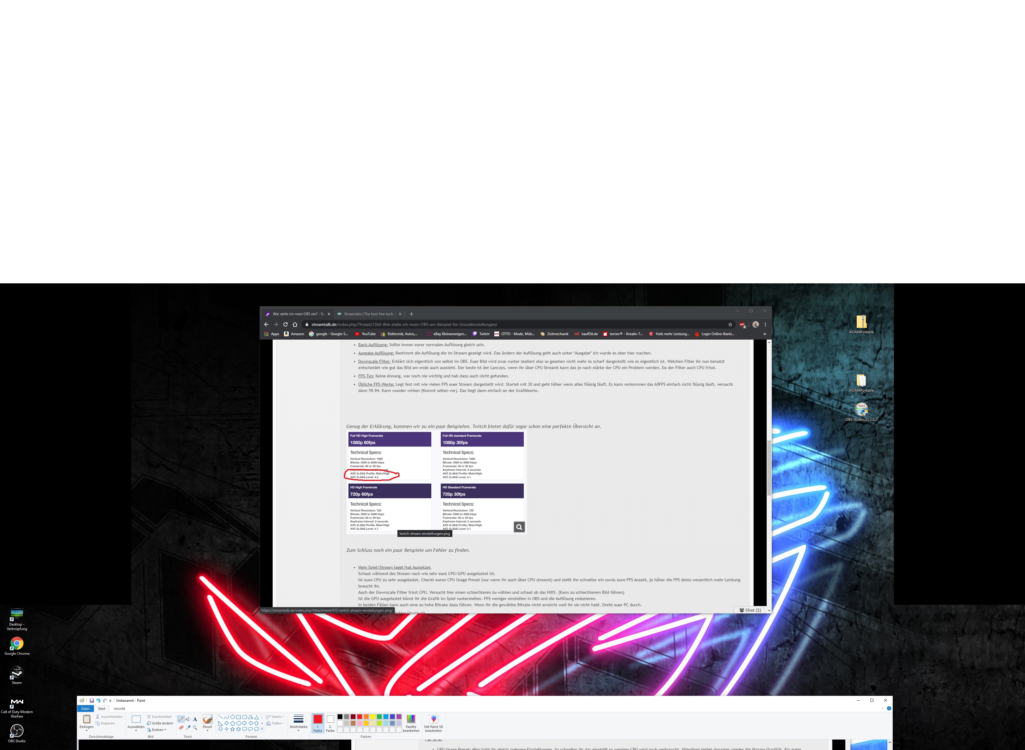 ich möchte das streamen anfangen aber ich bekomm die einstellungen einfach nicht hin das es füssig läuft.