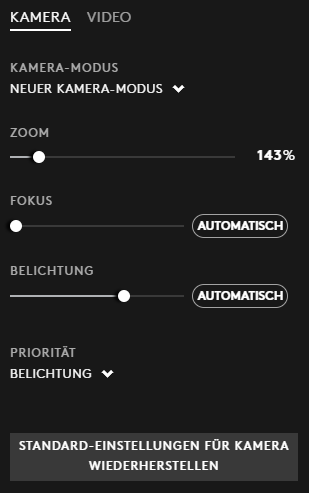 Kamera Software: Logitech G HUB (Screenshot der Einstellungen anbei)