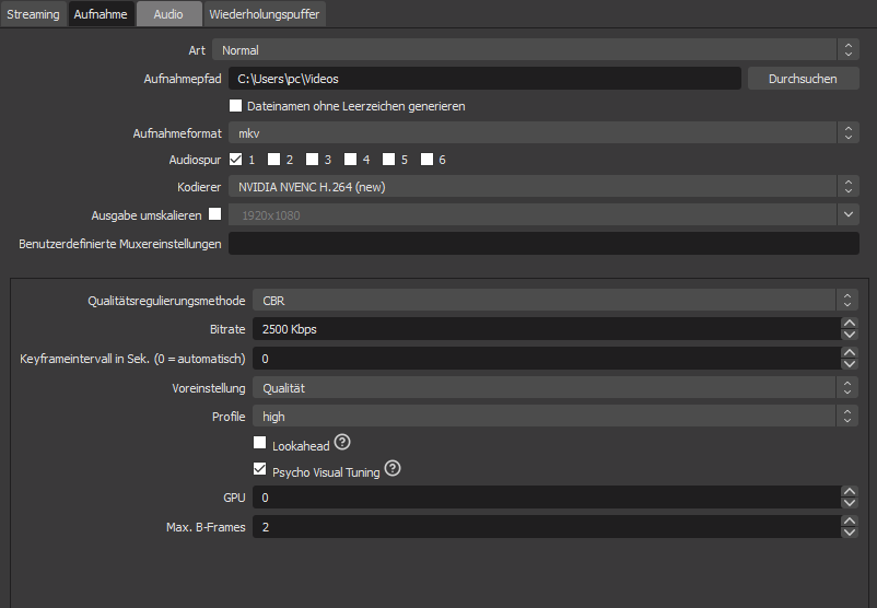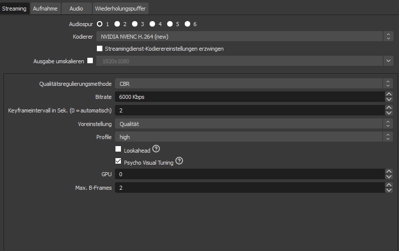 OBS eine Datenausgabe von 0.0 MB und eine Bitrate von 0kb/s. Der Status