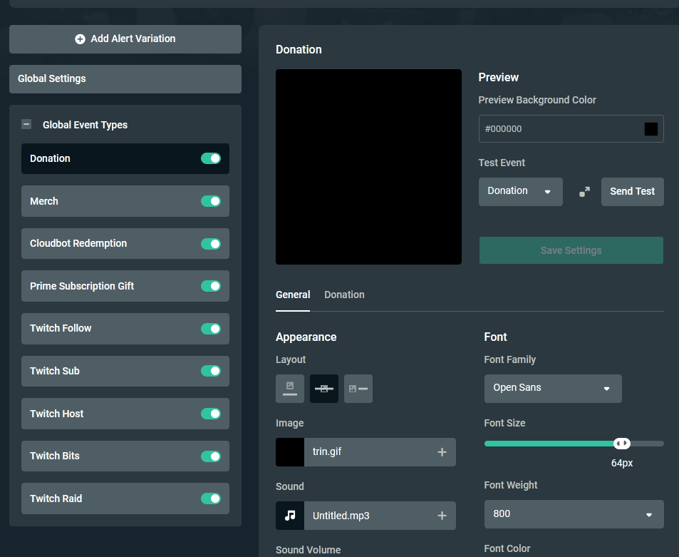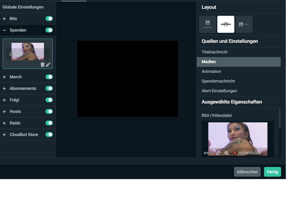 ich stelle meine alerts auf der seite ein, versehe alles was ich brauche mit gifs, den sounds und auf der homepage zeigt er es bei den tests auch alles so an wie es sein soll. in der streamlabs app stelle ich mir dann als quelle die alert box ein und im test bildschirm bleibt alles schwarz, aber er spielt meine sounds ab. weder da, noch bei dem widget test spielt er mir die animation ab, nicht meine eigene und auch nicht die standart animationen, lediglich nur den sound. ich weiß nicht ob mir irgendwie eine kleinigkeit entgangen ist die das problem löst, aber ich drehe hier am rad ![]()
