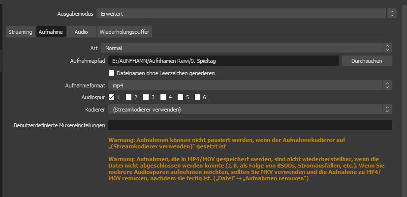 hochgeladen sowie Screenshots mit meinen OBS settings