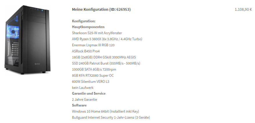 Dieses Setup würde jetzt 1.064€ kosten. Ohne w10 1.019€!