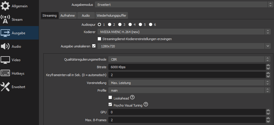 Ich habe mal meine Stream Settings für euch sichtbar gemacht vielleicht sieht ja einer woran es liegt.