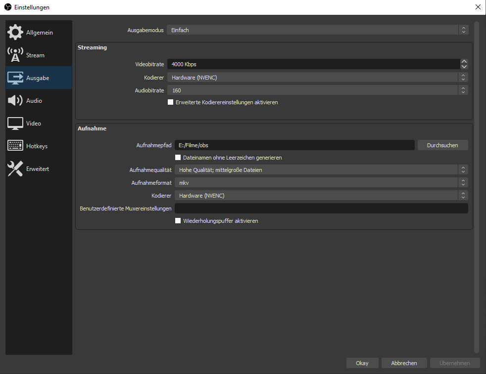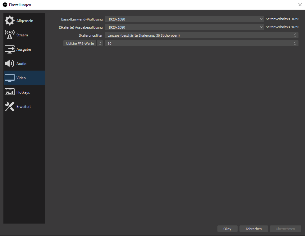 Die Settings von OBS stelle ich als Anhang hier rein!