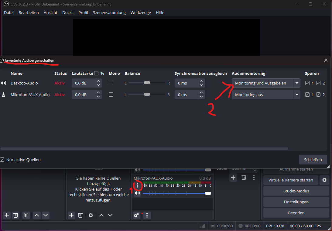 Wir gehen über Ninja in Streamlabs. Aktuell laufen unsere beiden Mikros (Thomann t.bones dynamisch XLR) über mein Focusrite 2i2 Interface. Das funktioniert auch, bloß dass es für gelegentliches Delay in Bild und Ton sorgt, weil der Ton in Ninja über meine Browserquelle kommt, ihr Bild aber über ihre.